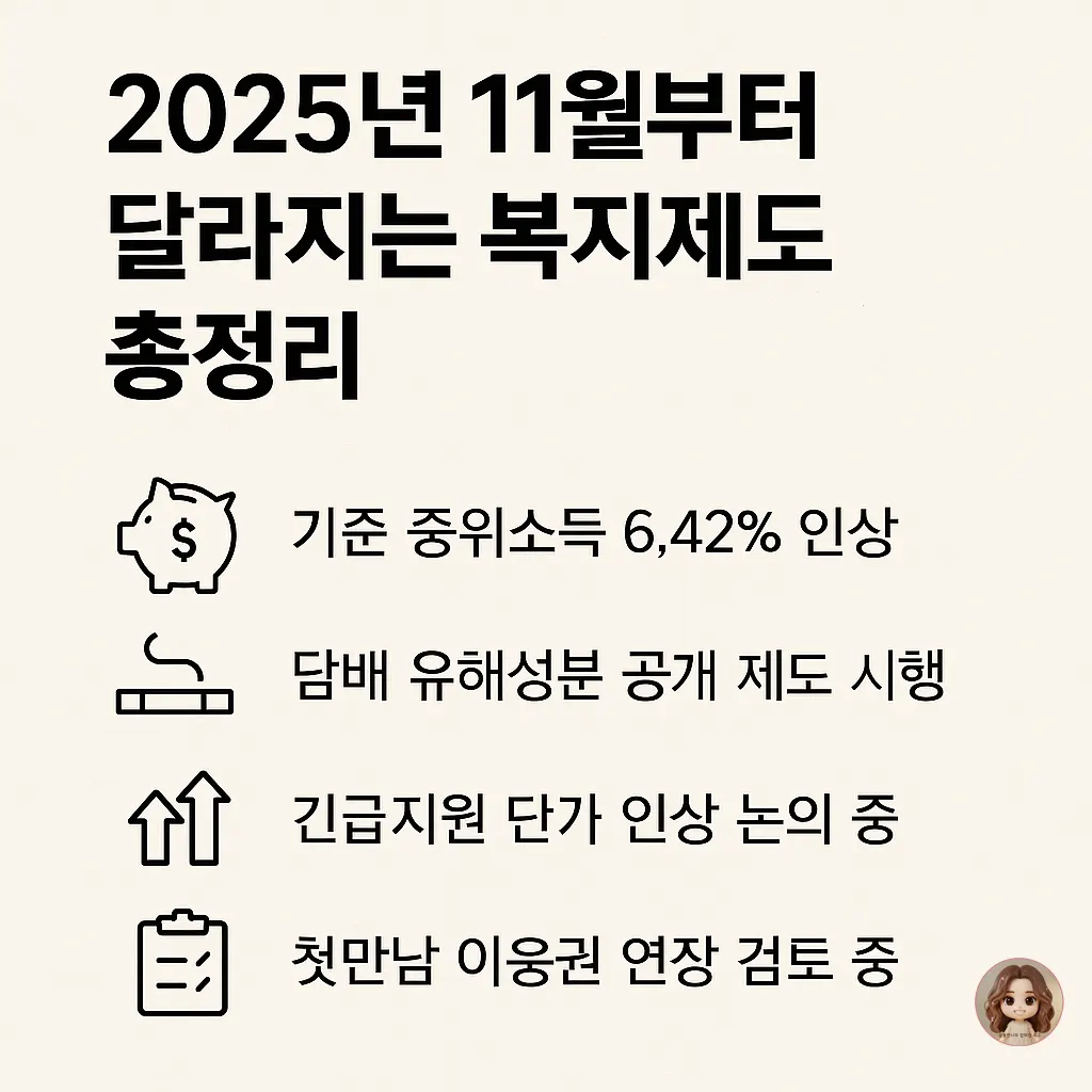 2025년 11월부터 시행되는 복지 변화는 단순 개편이 아니라 실생활에 영향을 주는 구조 변화입니다.